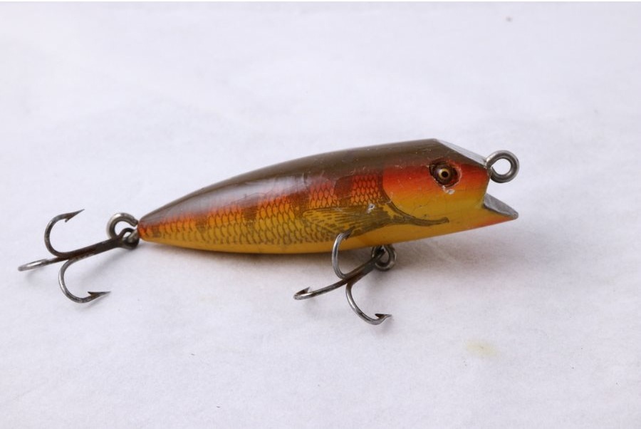 小型のウッドルアー 全長約7.5cm フォトフィニッシュ 小さなグラスアイが付いています。